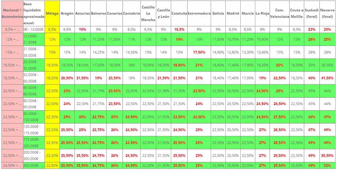 IRPF año 2026: Málaga (Andalucía) vs. Alicante (Comunidad Valenciana)